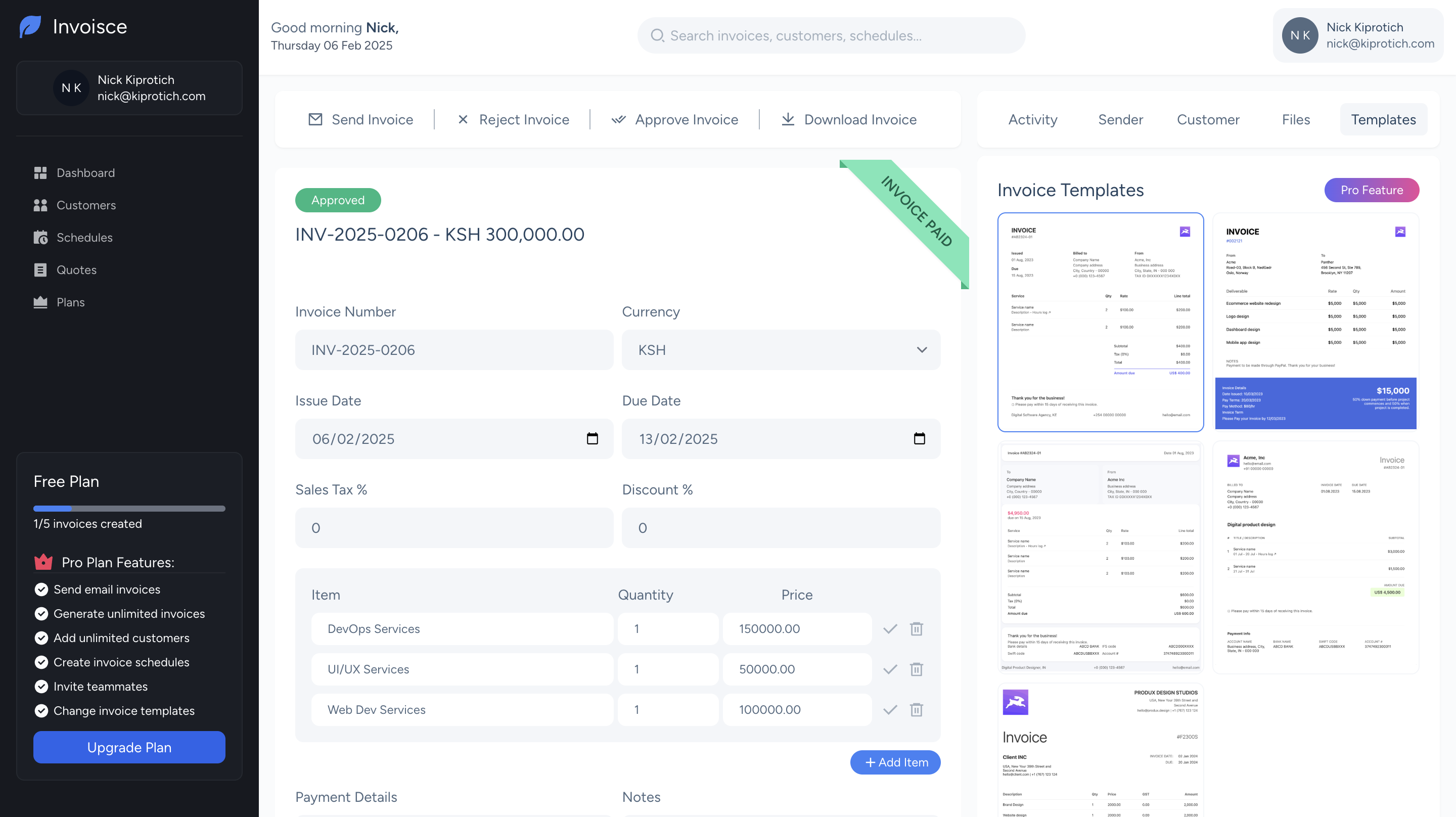 Generate, schedule and send professional invoices with ease.